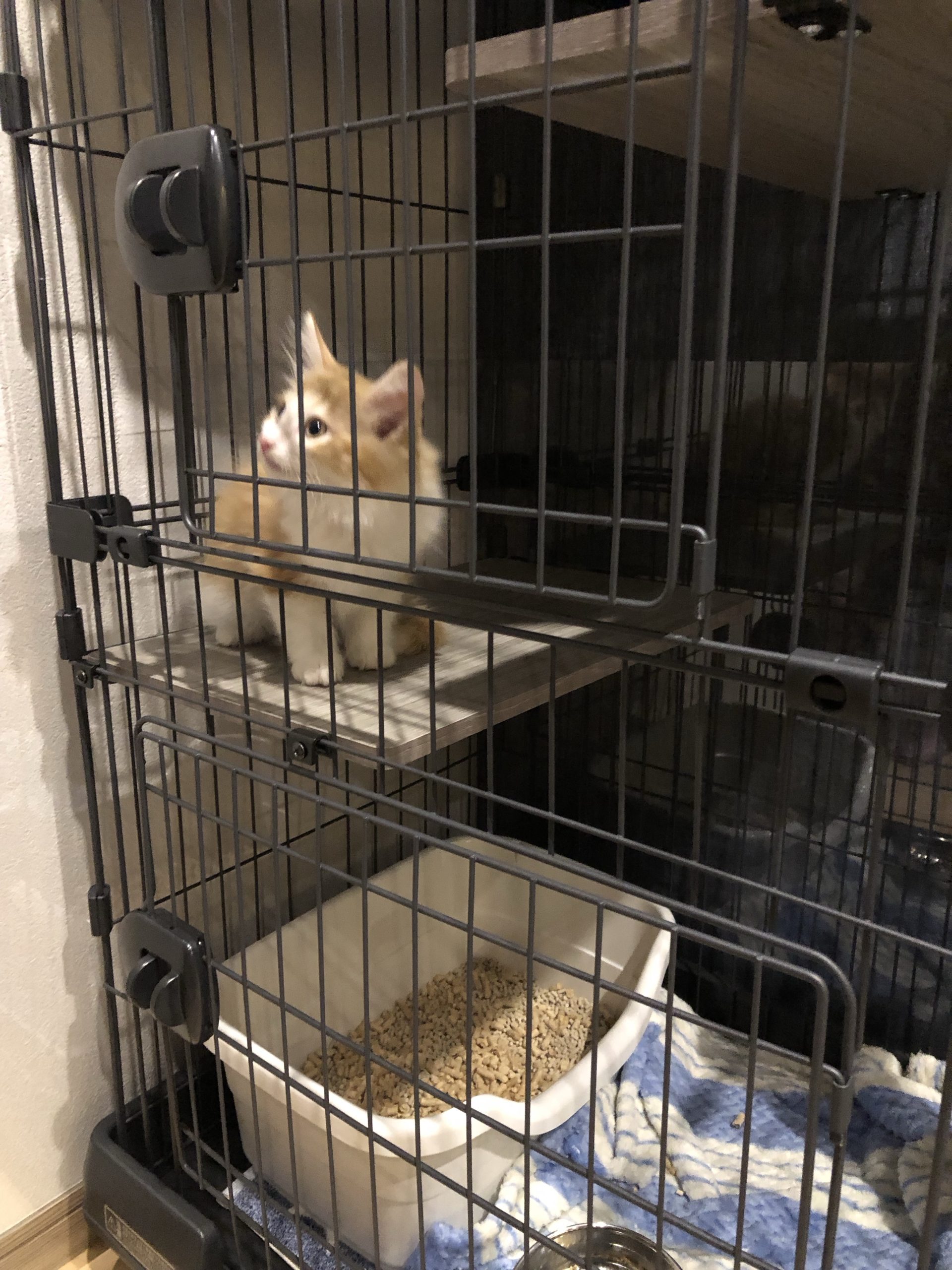 二日目の様子 どーもうぇじゃんです。 ノルウェージャンフォレストキャットのふわちゃんをお迎えして初日の夜、ケージに毛布をかけて目隠し状態。 テレビの音には反応しないが、うぇじゃんと妻の話声には反応してにゃーにゃー。聞き分...