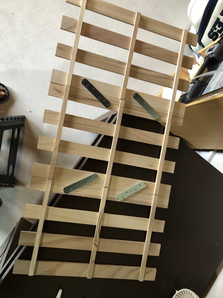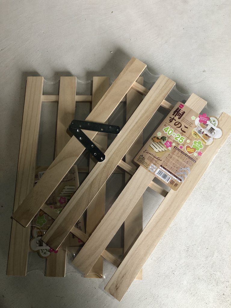 40×25のスノコ3枚を補強しながらビスで止めることにしたよ。
