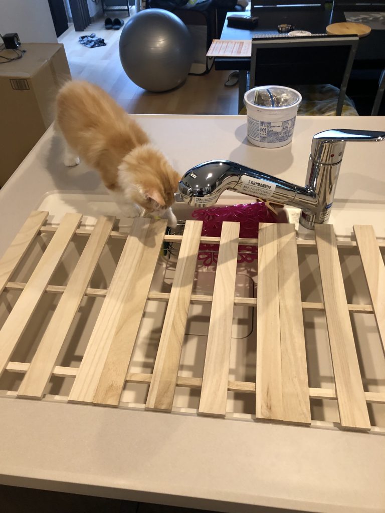 猫は本来水は嫌がることが多いらしいけどやはり動くものや匂いに興味が勝るのか、飼い主としてはあまり登ってほしくないキッチンで探検隊をしてくれる。