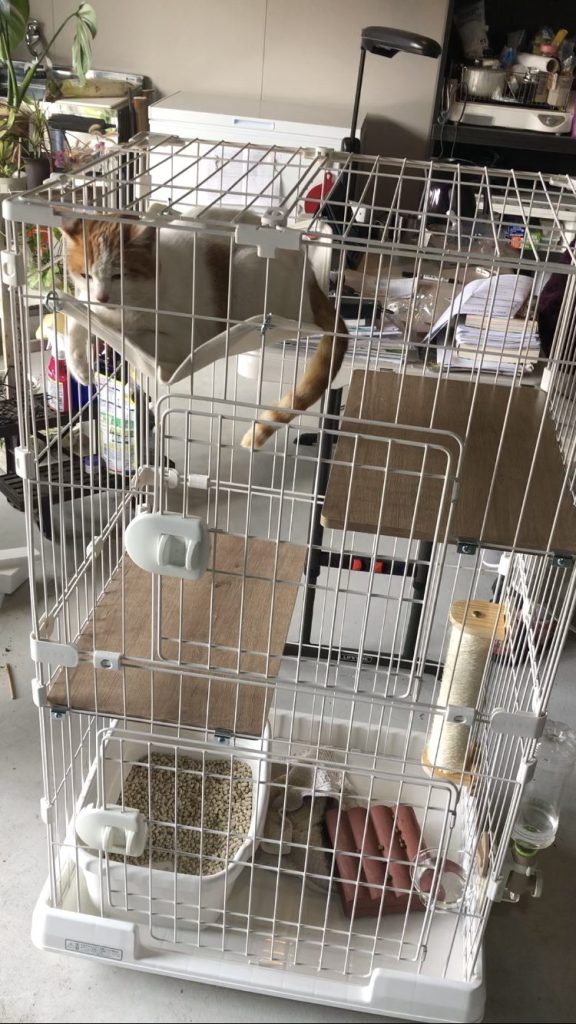 抱っこして特に暴れもせずにケージに入ってくれたよ。