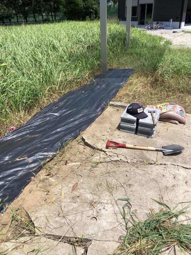 さーて、では設置場所の草を処理していく。もうね、原始的に引っこ抜く!引っこ抜く!引っこ抜く!